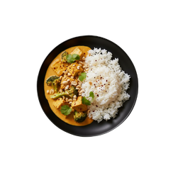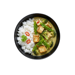 Thai green curry with tofu, coconut milk, and assorted vegetables